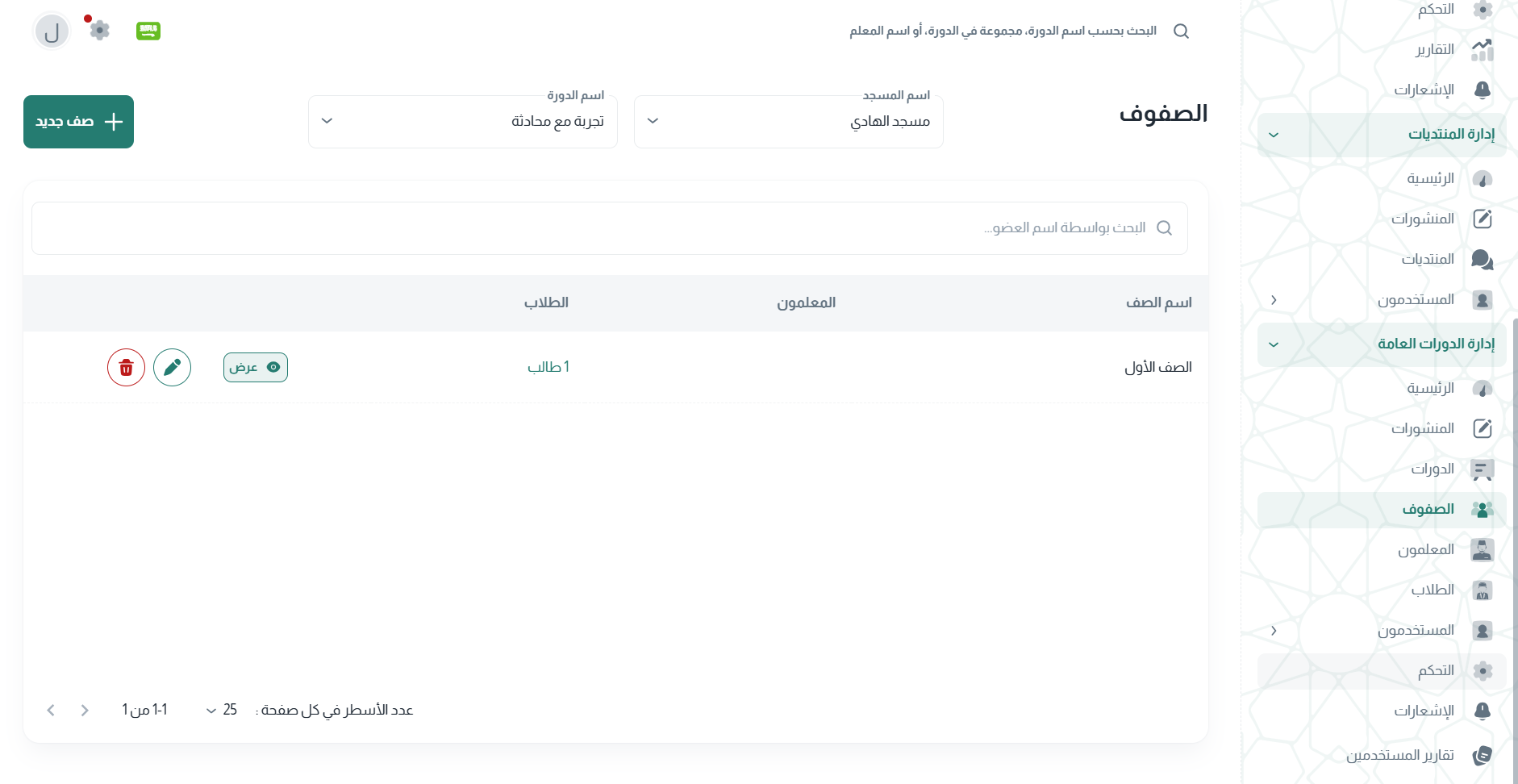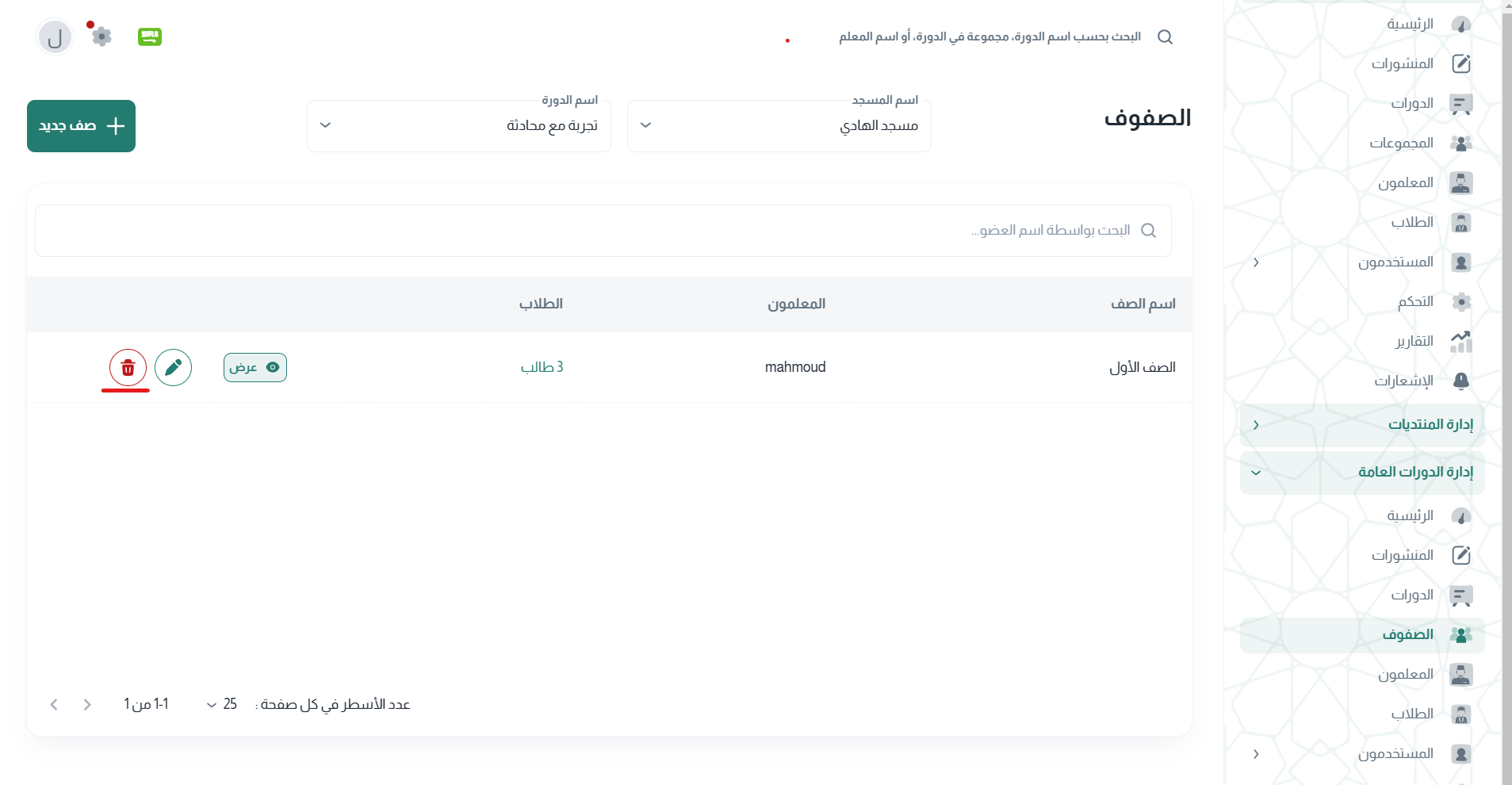 - المعلمون: يعرض عدد المعلمين أو أسماء المرتبطين بالصف.