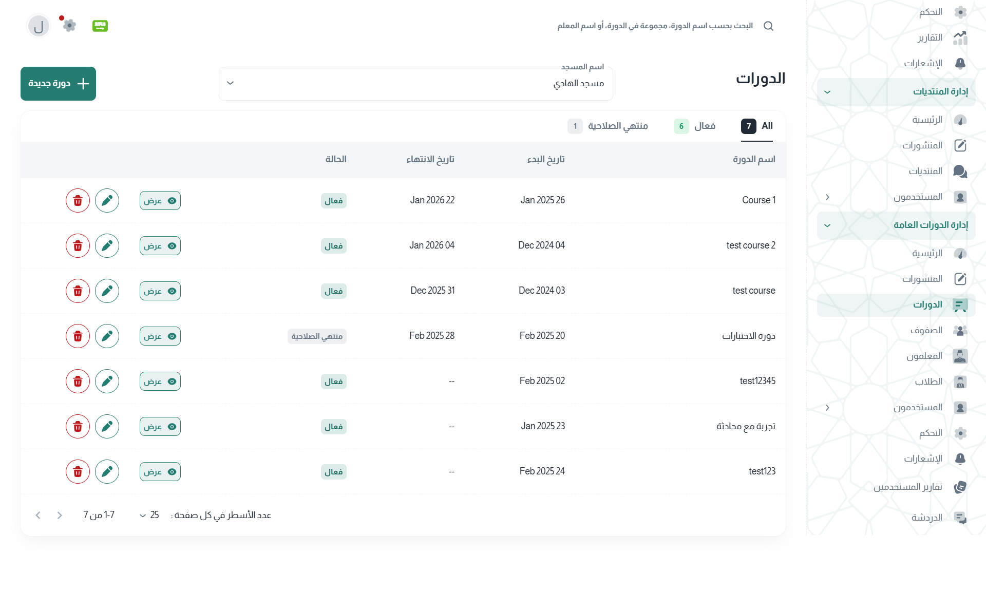 • خيارات: تتيح للمستخدم إجراء عمليات محددة على الدورة، مثل عرض تفاصيلها، تعديلها، أو حذفها.